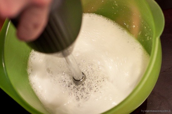 - Ainekset kippoon ja sauvasekoittimella vaahto.