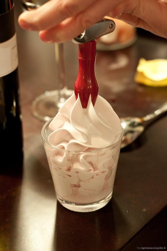 - Vadelmavaahtoa, porkkanakaviaaria ja gin tonic -ilmaa