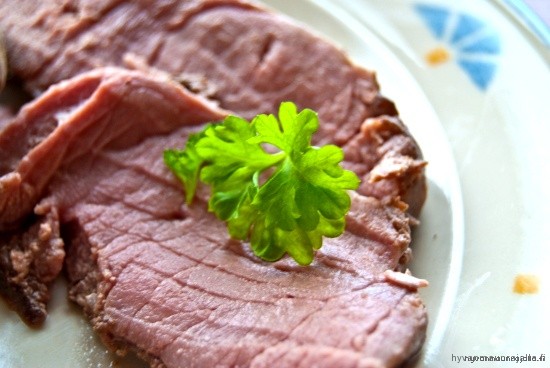 Pakastimen viimeinen hirvipaisti päätyi tyhjiöpakkauksen kautta viikonloppupöytään metsästä löytyneen korvasienisaaliin kaveriksi. Hirveähän voi hankkia loppusyksystä kauppahalleista tai sitten tutuilta metsämiehiltä kyselemällä. Nuoren hirven paistia kannattaakin pakastaa jo mureuttamisenkin vuoksi. Toki mureuttamiseen voi käyttää myös vesihaudetta, mutta tällöin on oltava erityisen tarkka lihan hygieenisesta käsittelystä, sillä matalassa lämmössä mureutus voi aikaansaada myös ei toivottua bakteerikasvua. Korvasieni on tämän ajan herkku. Tosin artikkelin ulostullessa Etelän korvasieniaika on jo päättymässä, mutta keski- ja pohjoissuomessa korvasieniä löytää vielä pitkälle kesäkuuhun. Korvasienten käsittelyssä on oltava erityisen tarkka, sillä ne sisältävät runsaasti erittäin vaarallista gyromitriinia, mikä nautittuna voi aiheuttaa maksavaurion ja kuoleman. Sienten käsittelyyn ohjeita löytyy mm eviran sivuilta ja suosittelenkin tutustumaan niihin huolella jo ennen sienimetsään lähtemistä. Kannattaa myös muistaa että sieniä ryöpättäessä kattilasta haituvat höyryt sisältävät myrkkyjä ja itselleni ainakin tuli keittäessä kertaalleen heikko olo ja jouduin siirtymään hetkeksi ulos vetämään happea. Oikein käsiteltynä korvasieni on todella herkullinen syötävä ja se säilyttää rakenteensa hienosti kypsennettäessä. Suosittelen kokeilemaan.