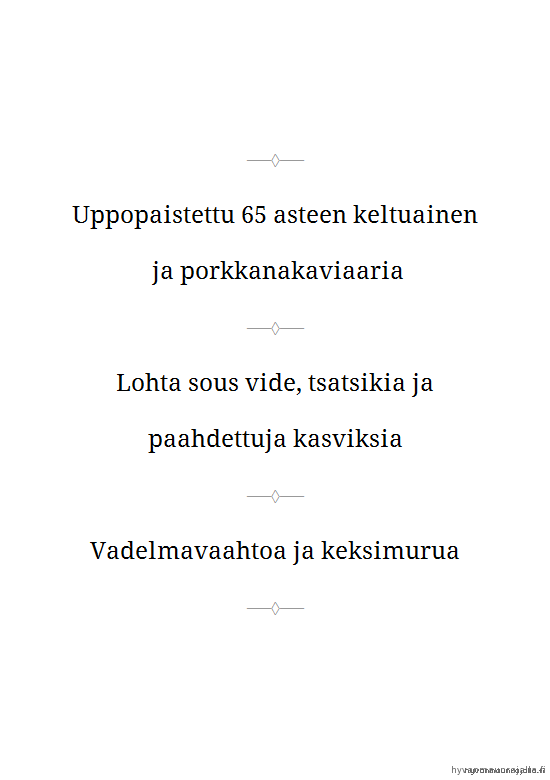 Halusimme suunnitella kokattavaksi sellaisen menun, jota olisi helppo lähestyä kotioloissa. Se ei vaatine raaka-aineiden, ajan, kärsivällisyyden ja muutaman perustarvikkeen lisäksi investointeja erikoislaitteisiin tai kemikaaleihin. Tuloksena oli kolmen ruokalajin menu, jossa yhdistyy molekyylikokkauksen perustekniikat.
