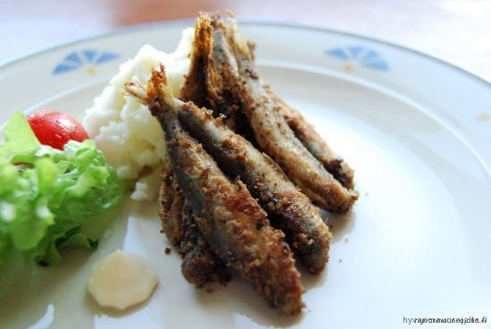 Todella helppoa ja erittäin maukasta. Pieni kissa istui kieli pitkällä keittiössä kun valmistin kaloja. Kyllähän tästä satsista sillekin pari liikeni maistiksi.