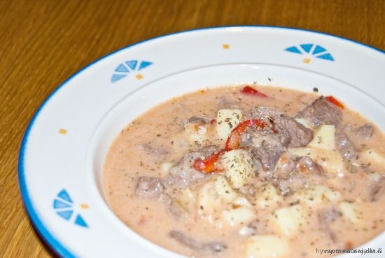 Poroa, paprikaa ja perunaa. Siinäpä ainekset oivaan soppaan..