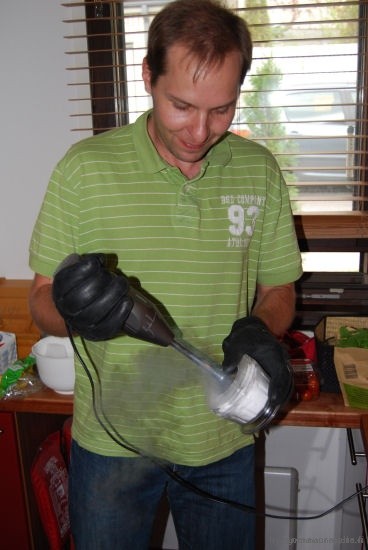 - Kaada massa sifoniin, lataa patruuna, ravista ja jätä jääkaappiin tekeytymään vähintään 12 tunniksi.
