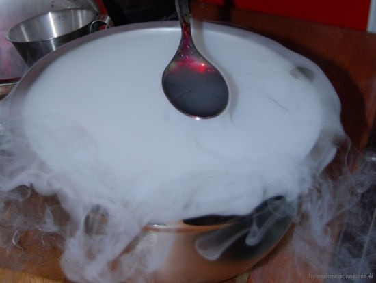 - Sorbetti on valmis. Pidä huoli, että hiilihappojäätä ei jää sobettiin tarjoiltaessa.
