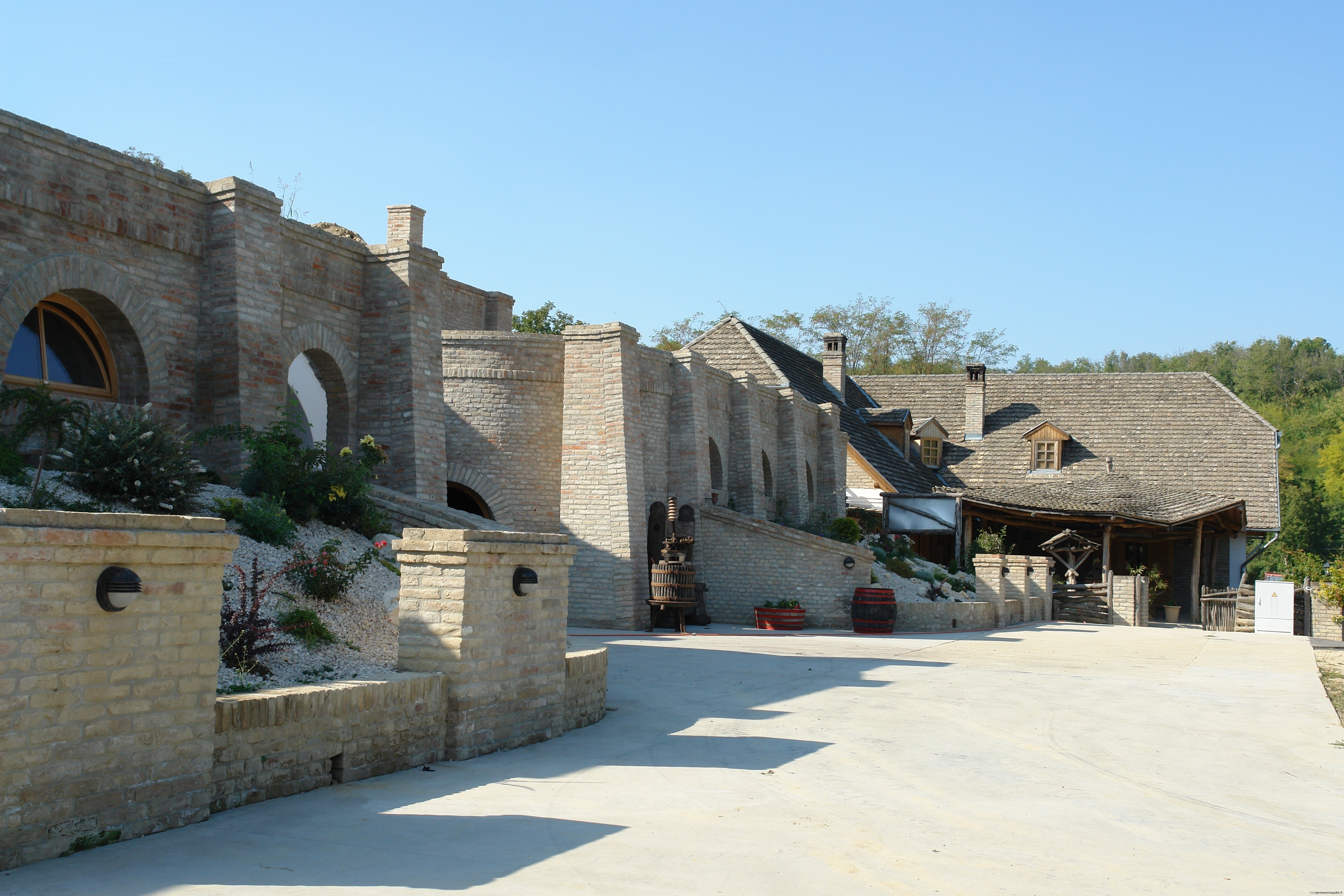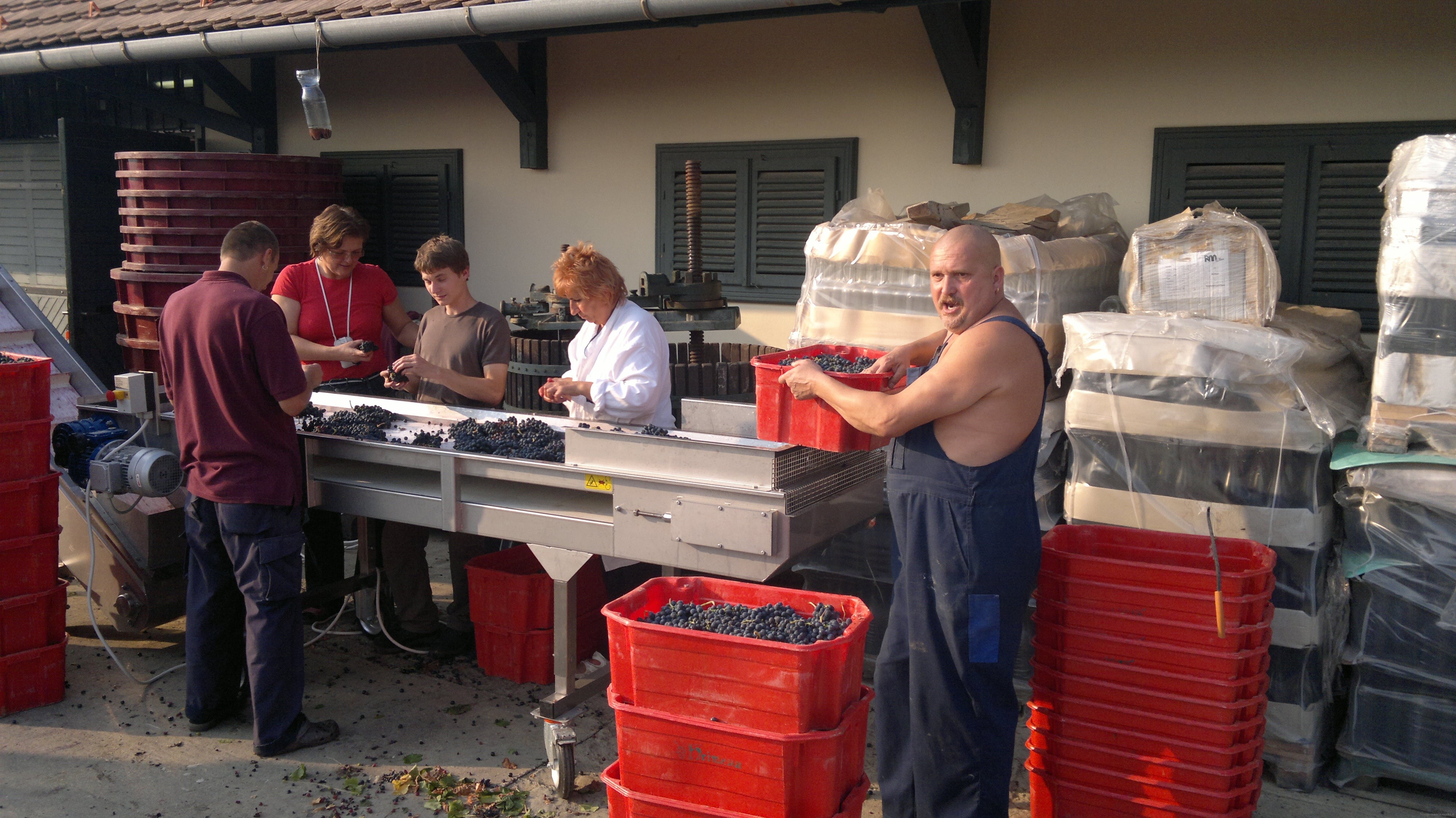 Szekszardissa ollessani vierailin myös muutamalla muulla tilalla. Niistä ensimmäinen oli Takler, joka on muiden viininvalmistajien mielestä yksi alueen parhaista tiloista. Takler on 300 vuotta vanha perheyritys, joka on pikkuhiljaa laajentanut toimintaansa omistaen nykyään reilut 60 hehtaaria viljelyksiä, joista valmistetaan reilut puoli miljoonaa pulloa viiniä. Takler panostaa laatuun, joka näkyi heti tilalle saavuttaessa. Rypäleet saapuvat 25kg laatikoissa tilalle, jossa ne ensin lajitellaan ja vasta sen jälkeen prosessoidaan. Taklerin vastavalmistuneet tuotantotilat ja kellarit kaariholveineen ovat vaikuttavat. EU-rahoituksen myötä kellariin on rakennettu tilat myös isompien juhlien järjestämistä varten. Taklerin viinit olivat tasaisen laadukkaita, mutta ehkä tilan hieman jäykkä tunnelma sai viinitkin tuntumaan aavistuksen kliinisiltä. Kadarka ja Bikaver olivat tyylikkäitä, mutta hinta-laatusuhde ei vastannut sitä mitä myöhemmin reissullani kohtasin…