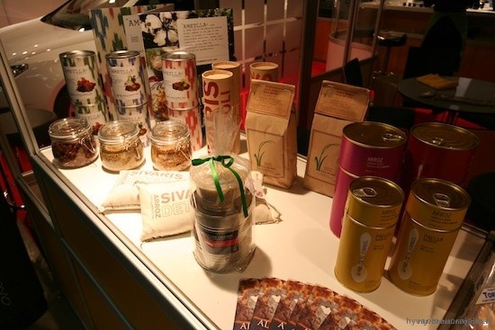 Messuilla oli siis ruoka- ja viinipuolet erikseen. Hyvä elämä koostuu näiden yhdistelmästä, oletan, ainakaan messuilla ei erikseen ollut sellaista osastoa :) Ruokapuolella edustettuina oli niin kotimaisia kuin ulkolaisiakin yrityksiä, palveluita ja tuotteita. Laarit notkuivat herkkuja, englantilaista fudgea, italialaista juustoa, makkaraa, mausteita, suklaita, chilituotteita, öljyjä, jauhoja, riisejä… Tuotepuolella oli monenlaista keittiövälinettä ja -konetta. Gaggenaun näytöskeittiössä katsottiin, kun miehet kokkasivat bruskettaa.