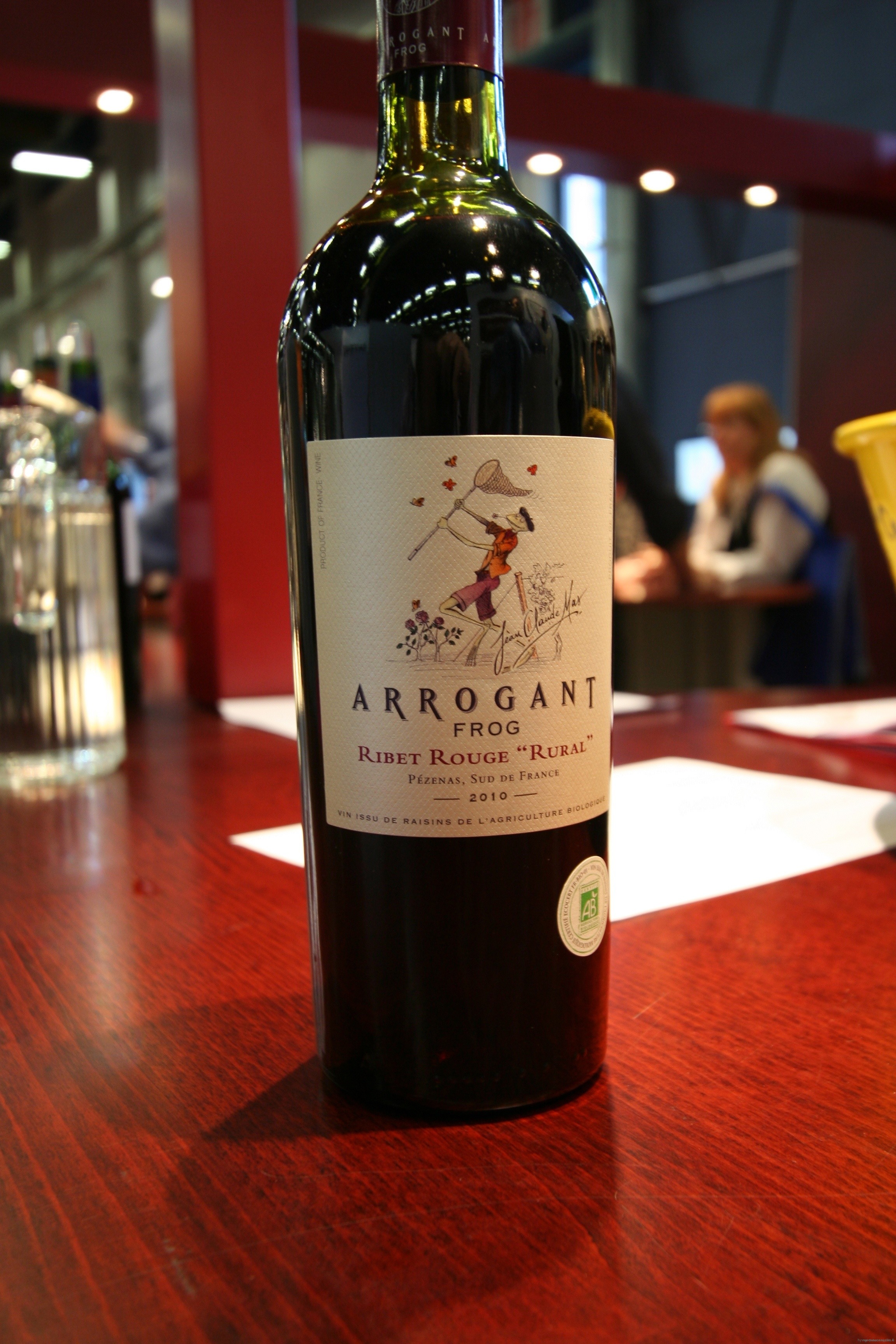 Lopuksi pyörähdin vielä AMKA osastolla. Westerlundin Tommin kanssa maistelimme useita kivoja viinejä Port-viinistä samppanjaan, mutta haluan mainita erityisesti Paul Mas Arrogant Frog Organic Ribet Red-viinin, joka hyvällä laadulla, hauskalla etiketillä ja yhtä hauskalla tarinallaan olisi hieno lisä Alkon valikoimaan. Englantilaiset kutsuivat Ranskalaisia nimellä Arrogant Frog (ylimielinen sammakko), joten Paul Mas loi sitten kyseisellä nimellä viinin. Modernilla tyylillä valmistettu Cabernet Sauvignon-Merlot sekoitus.
