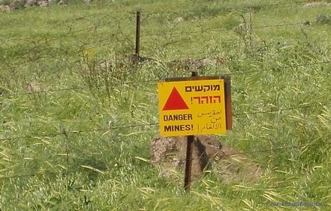 Matka jatkuu kohti Golan Heights Winerya. Kurvailemme mutkikasta tietä läpi kukkuloiden, jossa tienvarsia reunustavat piikkilanka-aidat ja suuret varoituskyltit miinakentistä. Korutonta maisemaa, jossa lehmät tyytyväisinä tallustavat keskellä miinakenttiä. Nämäkin upeat rinteet olisivat oivia kasvupaikkoja köynnöksille, mutta valtion resurssit eivät riitä miinojen raivaamiseen.