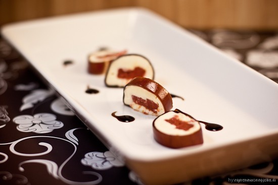 Molekyylikokkauksen yksi merkittävimmistä hyödynnettävistä reaktioista on hyytyminen. Sitä hyödynnetään tällä kertaa parillakin tavalla. Sovelletaan tähän Agazoonia, joka pohjimmiltaan on siis samaa kamaa kuin agar-agar, jota saa apteekeista. Agar-agaria tehdään punalevästä, ja se on täysin luonnollinen, mauton ja hajuton raaka-aine. Väitetäänpä sillä olevan suotuisa vaikutus myös kolesterolitasoihin ja ruoansulatukseen. Agar tunnetaan Eviran lisäaineiden E-koodiavaimessa agenttina E406.